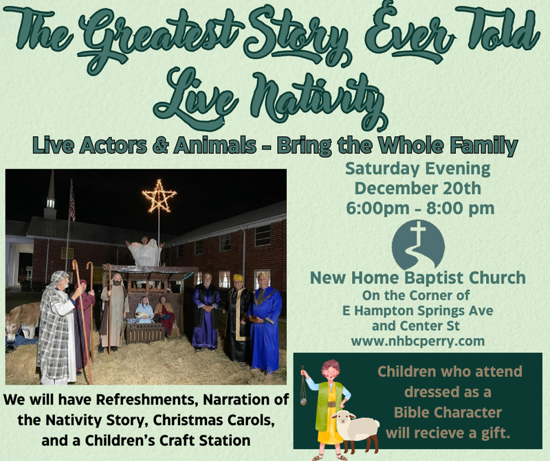 Welcome to New Home Baptist Church. We are glad that you’re here. On behalf of our entire church family, we want you to know that we are dedicated to meeting the needs of people wherever they are in life. You will find a variety of ministries here. We have classes and activities for every age group from the youngest baby to the “young at heart”. We look forward to getting to know you and ministering alongside you.