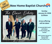 Welcome to New Home Baptist Church. We are glad that you’re here. On behalf of our entire church family, we want you to know that we are dedicated to meeting the needs of people wherever they are in life. You will find a variety of ministries here. We have classes and activities for every age group from the youngest baby to the “young at heart”. We look forward to getting to know you and ministering alongside you.